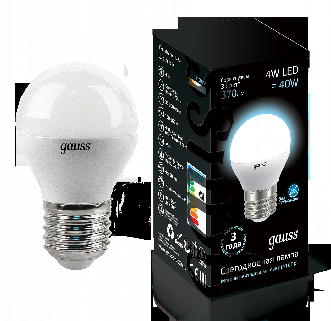 Лампа светодиодная Gauss LED Globe 6,5W E27 4100K шар