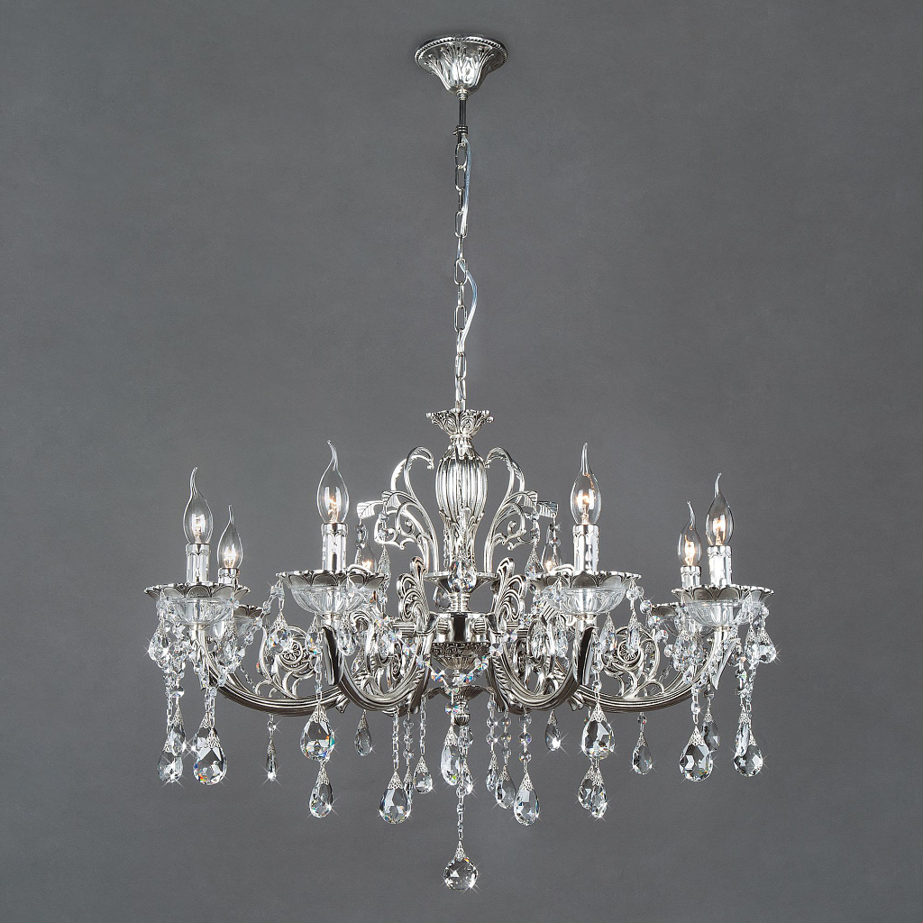 Подвесная люстра с хрусталем Bogate's 230/8 серебряный