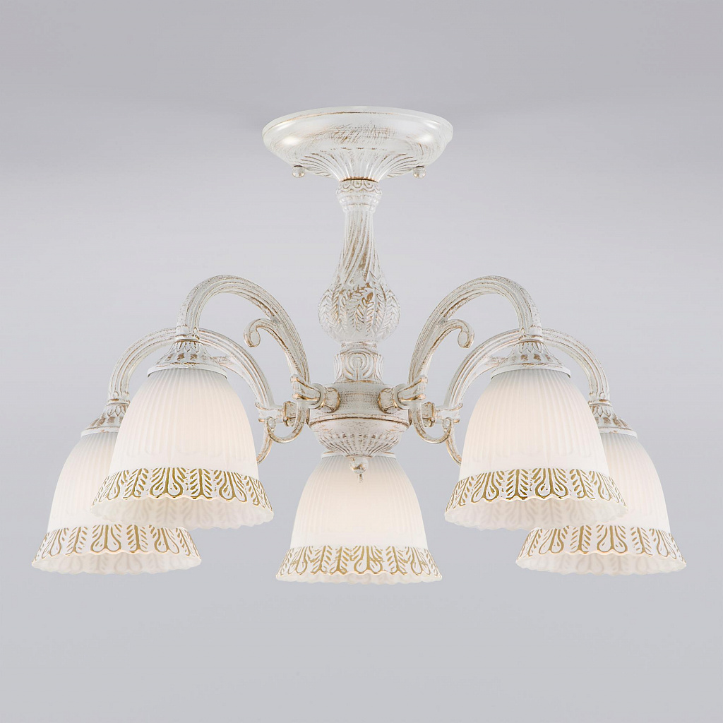 Потолочная люстра со стеклянными плафонами Eurosvet 60107/5 белый с золотом