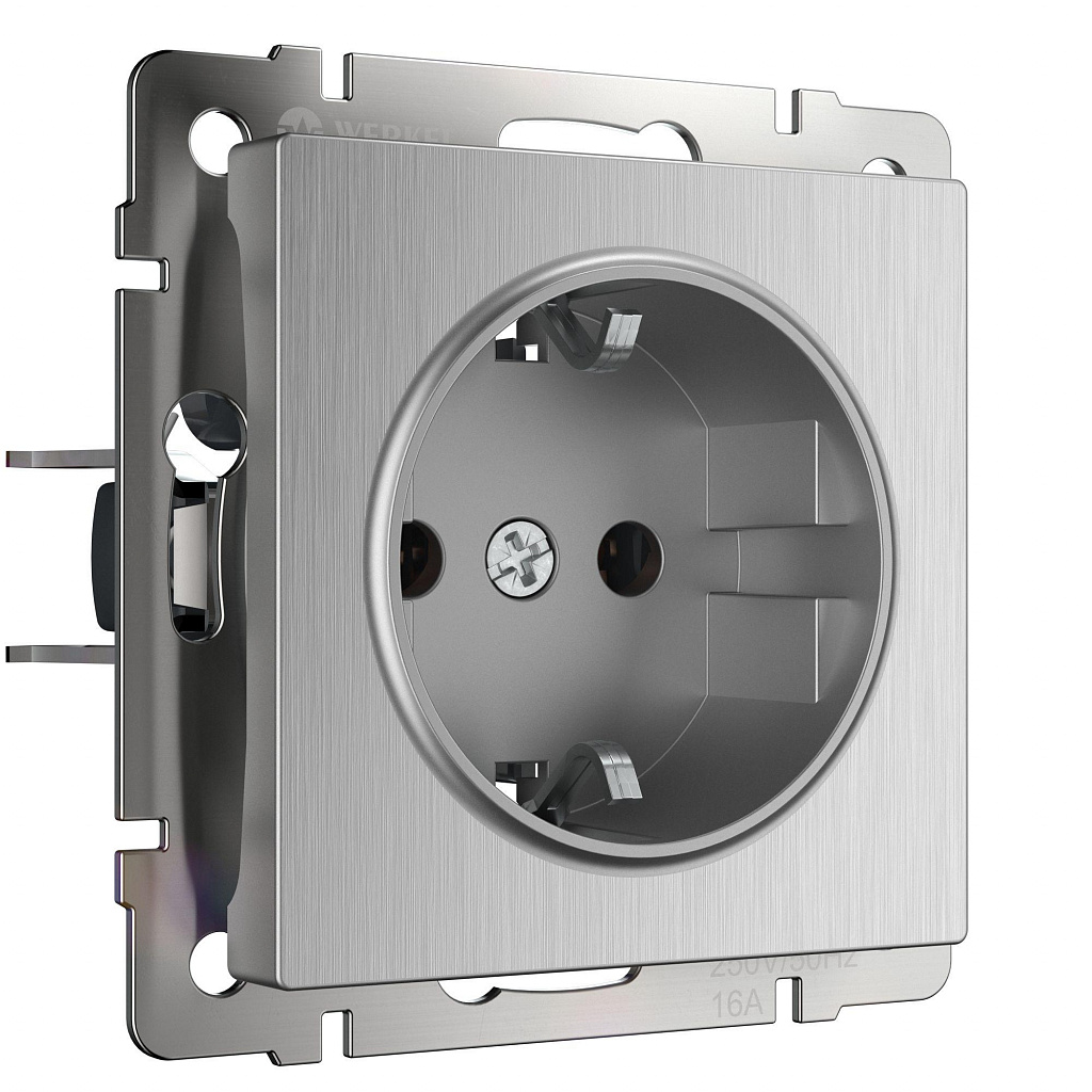 Розетка с заземлением cеребряный рифленый Werkel W1171009