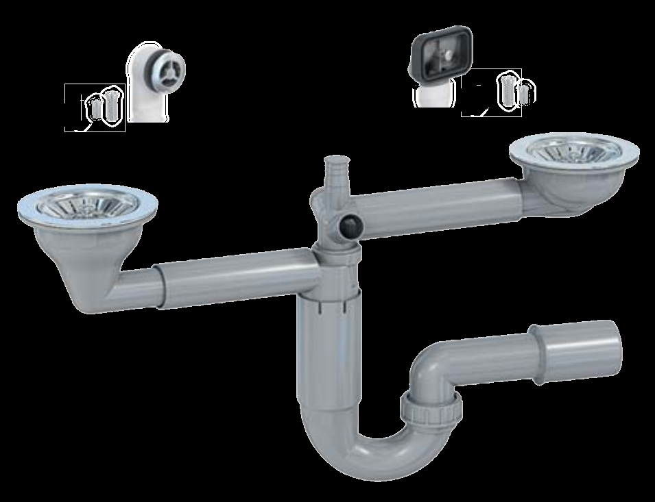 Сифон для мойки Prevex P-loc двойной PL2-D9C45-SANT-01